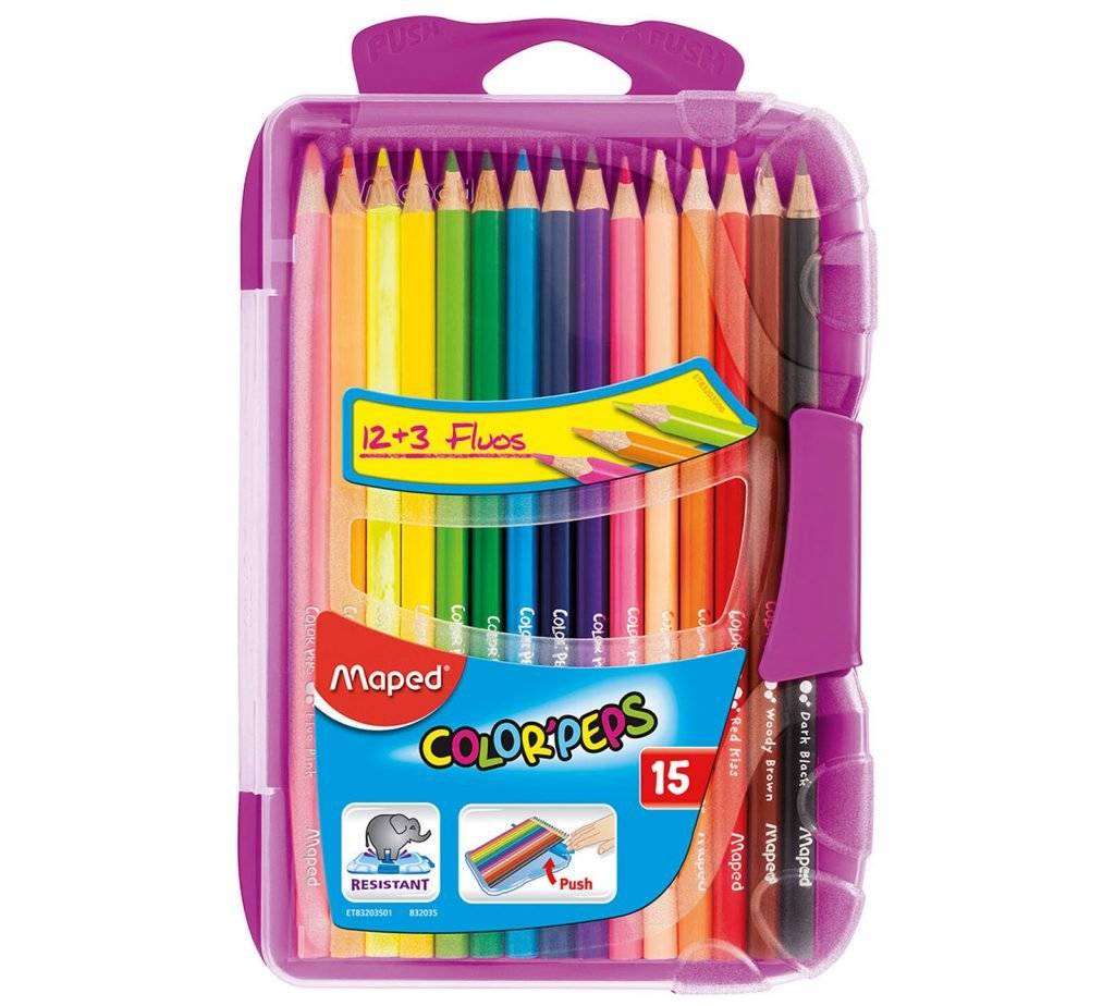 Карандаши упакованы в пластиковую коробку, в наборе может быть от 6 до 24 ярких и насыщенных цветов. Благодаря удобной трёхгранной форме комфортно помещаются в руке даже у самых маленьких художников.