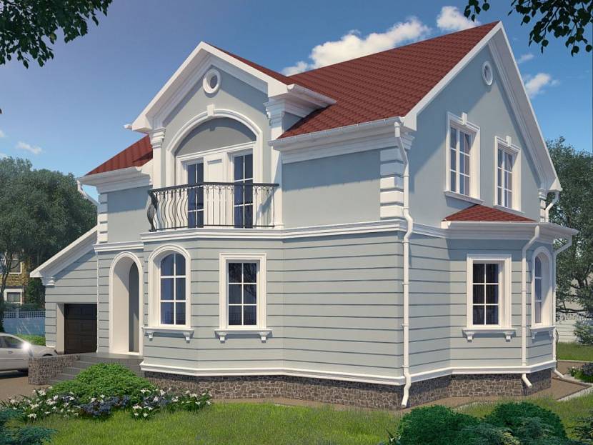 Очень популярны в отделке стен дома белые и серые цвета. Первые относятся к категории нейтральных и готовы сочетаться с любыми оттенками, вторые – скорее служит фоном, подчеркивающим яркость и красочность остальных конструкционных элементов фасада. Дополнив любой из этих вариантов отделки стен красной крышей, вы получите вечно модную классику.