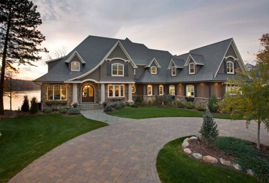 - Для большой крыши сложной конструкции правильным выбором будут мягкие и приглушенные тона; насыщенными можно сделать отдельные элементы.