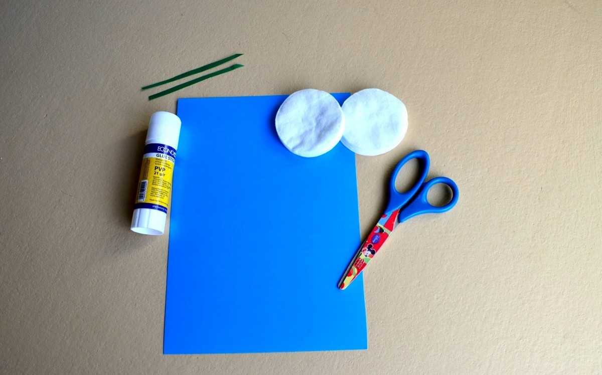 Очень просто изготовляются, но вместе с тем эффектно смотрятся ватные диски в элементарных аппликациях.
