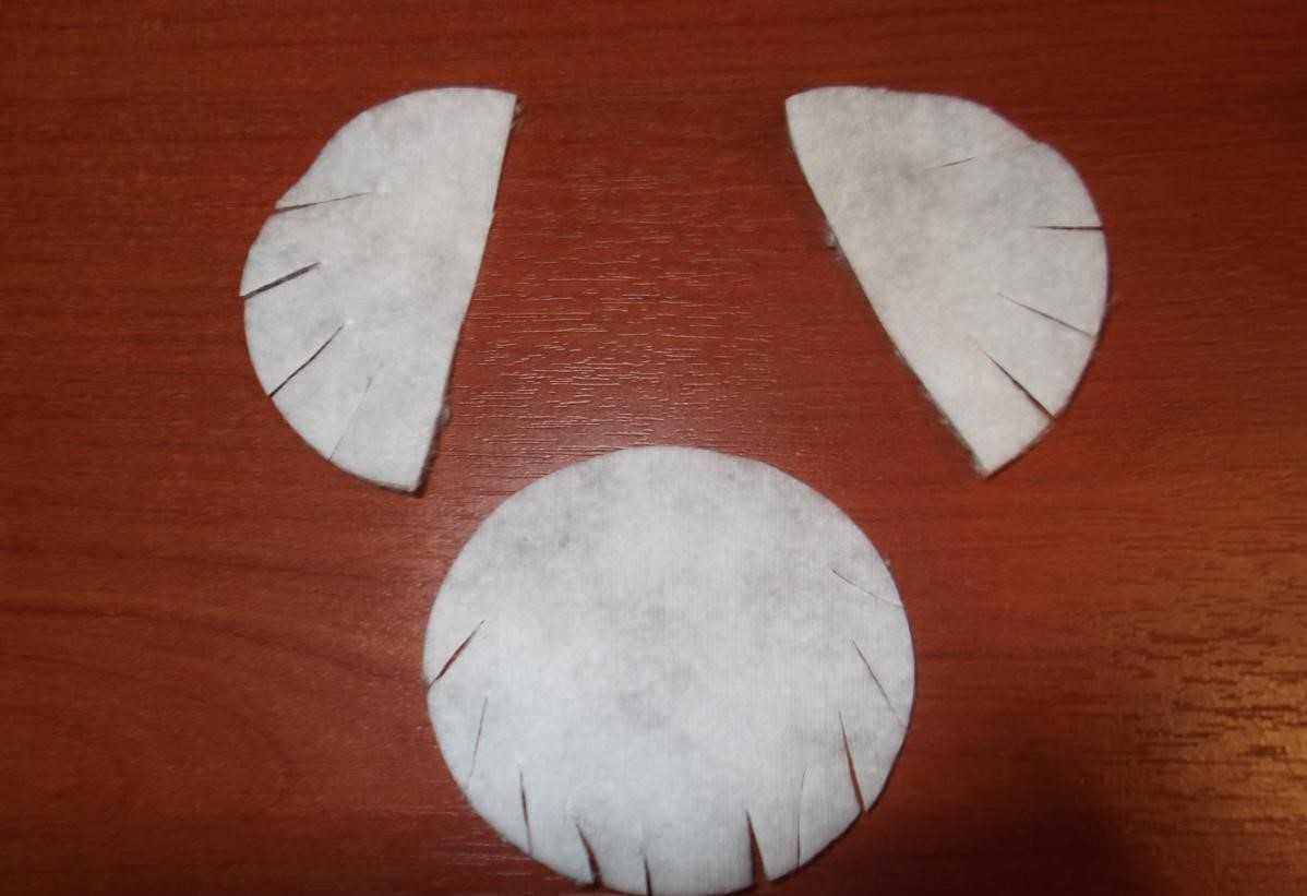 - Диски вымачиваются в крахмале и просушиваются. Формируются изящные лепестки, путём подгибания краев ватной заготовки. Серединку вырезают из плотной материи или фетра желтого цвета и приклеивают по серединке.