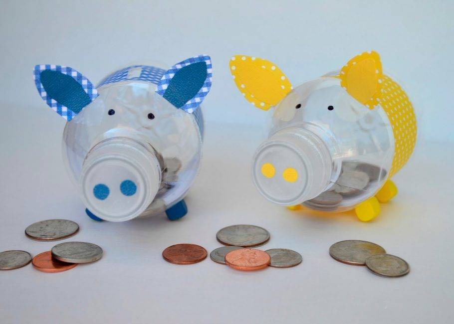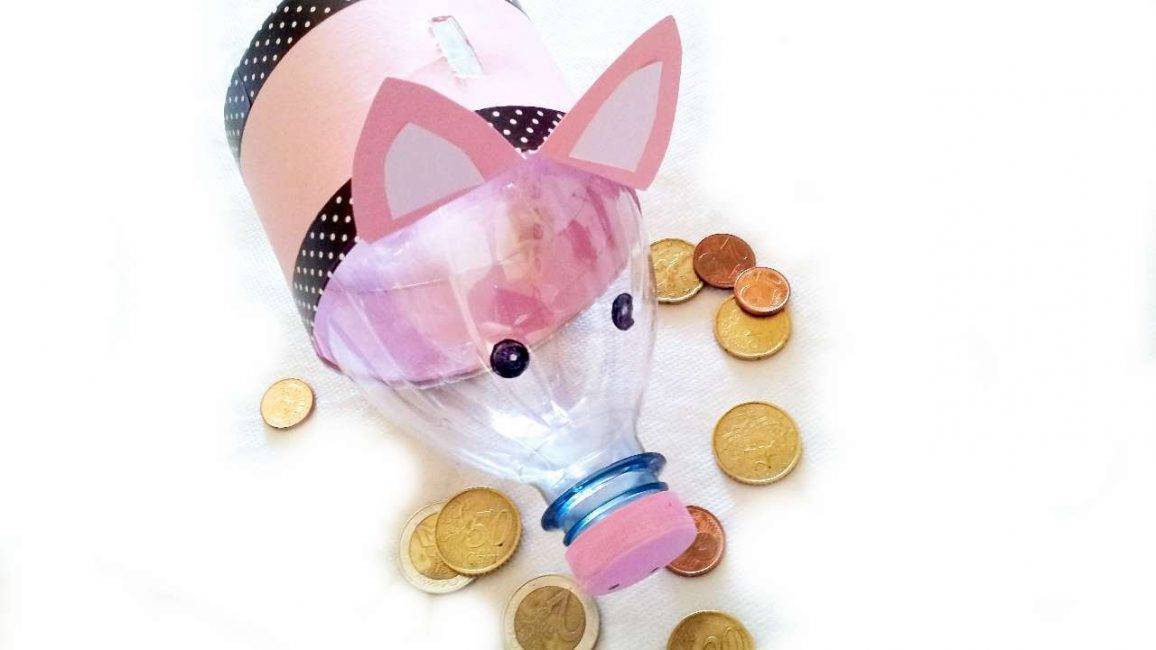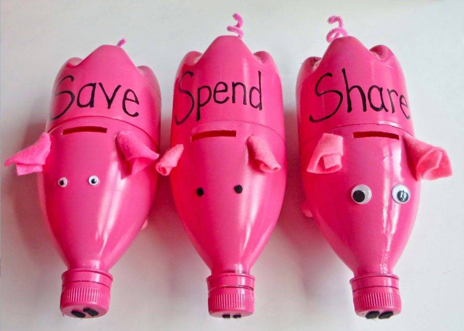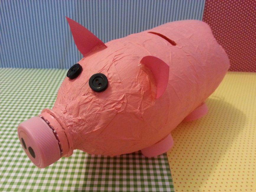 Форма пластмассовой бутылки больше подходит для создания копилки в виде поросенка. Чтобы её сделать, понадобятся следующие материалы: