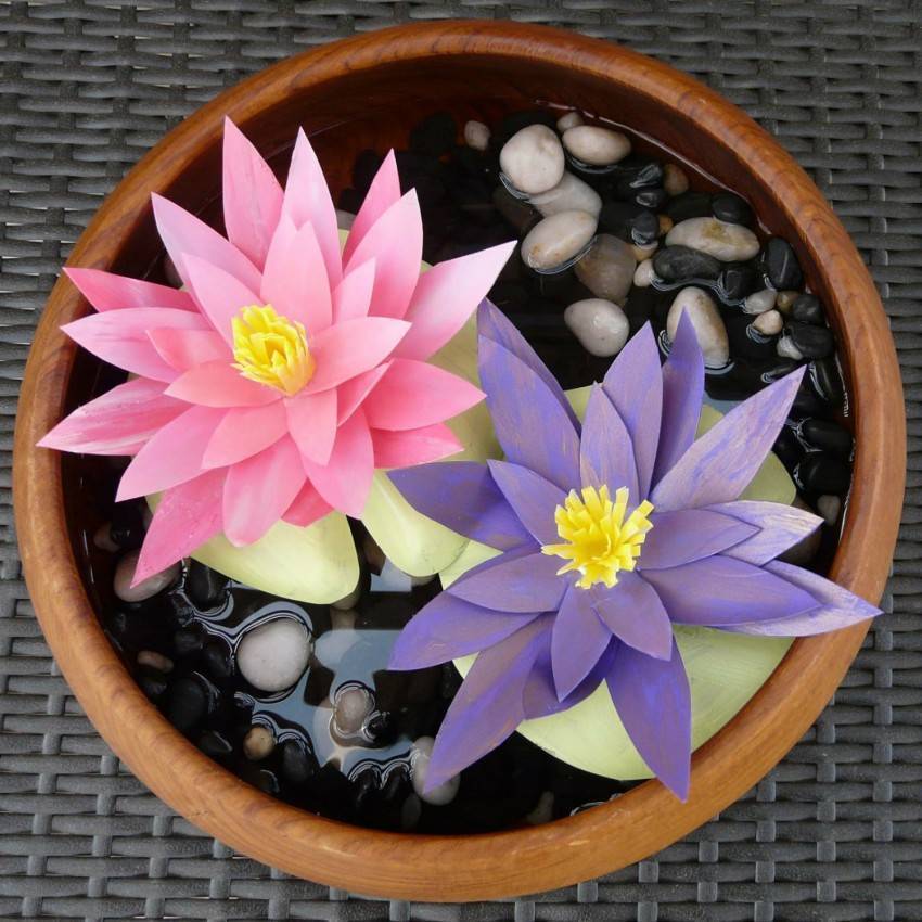 Можно использовать и живые растения, водоросли или цветы. Но в таком пруду придется чаще менять воду.