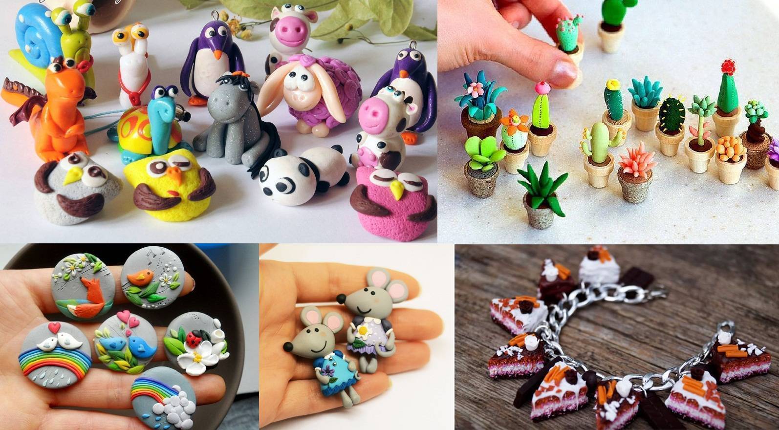 Из полимерной глины получатся тысячи разнообразных изделий: аксессуары, бижутерия, фигурки, статуэтки и другие предметы. Чаще всего из нее делают бусы, серьги, кольца, сказочных героев, фигурки животных, брелоки, цветы, кружки, украшения на елку.