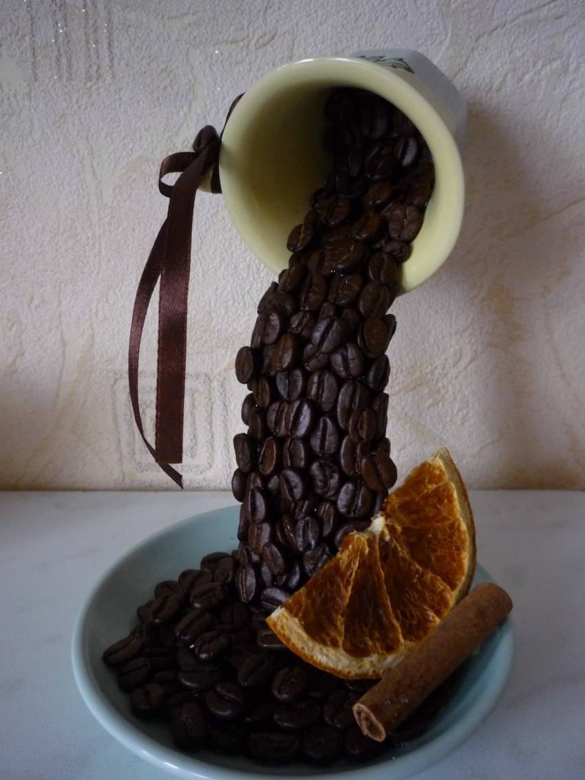 Поделки из кофейных зерен. Как украсить чашку с блюдцем кофейными зернами