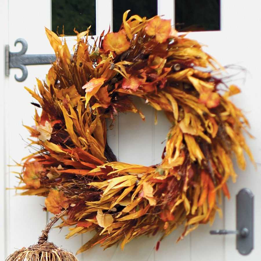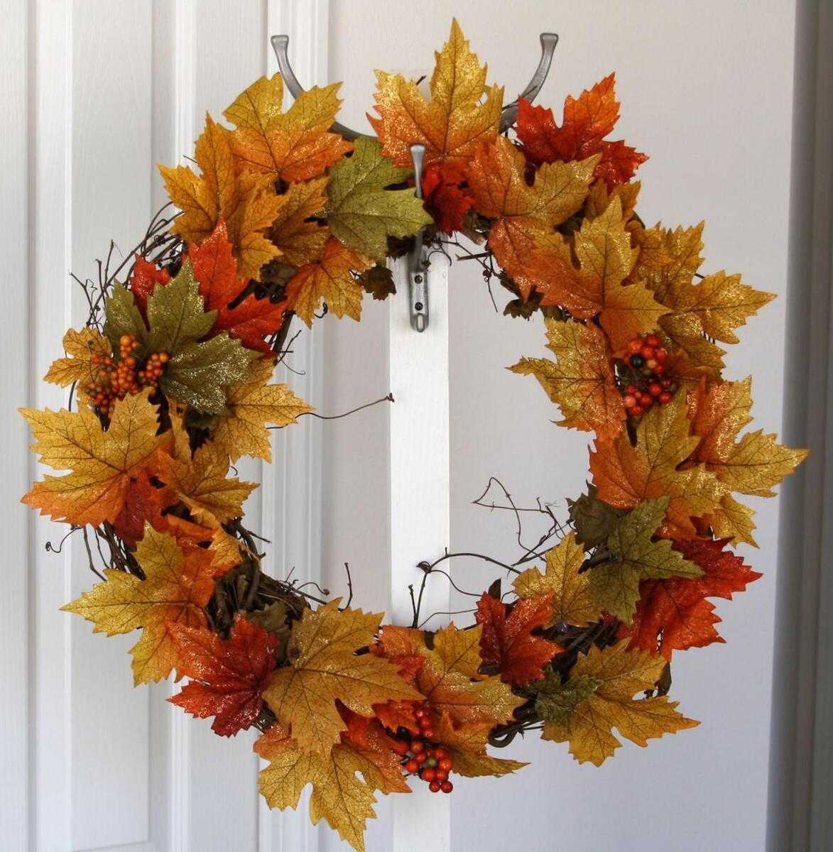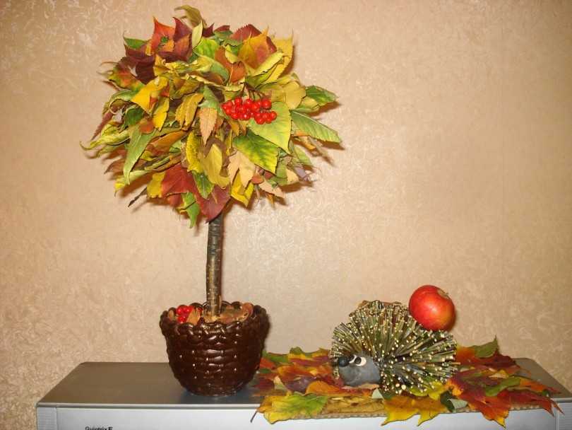 – разноцветные листья (если использовать искусственные, то украшение прослужит долго)