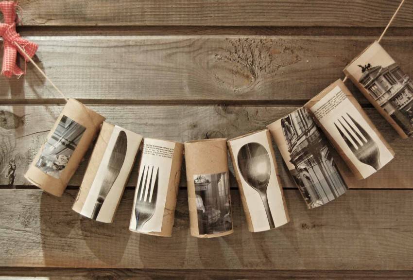 7. Сделайте несколько таких полосок с листьями и привяжите заготовки к люстре над столом.