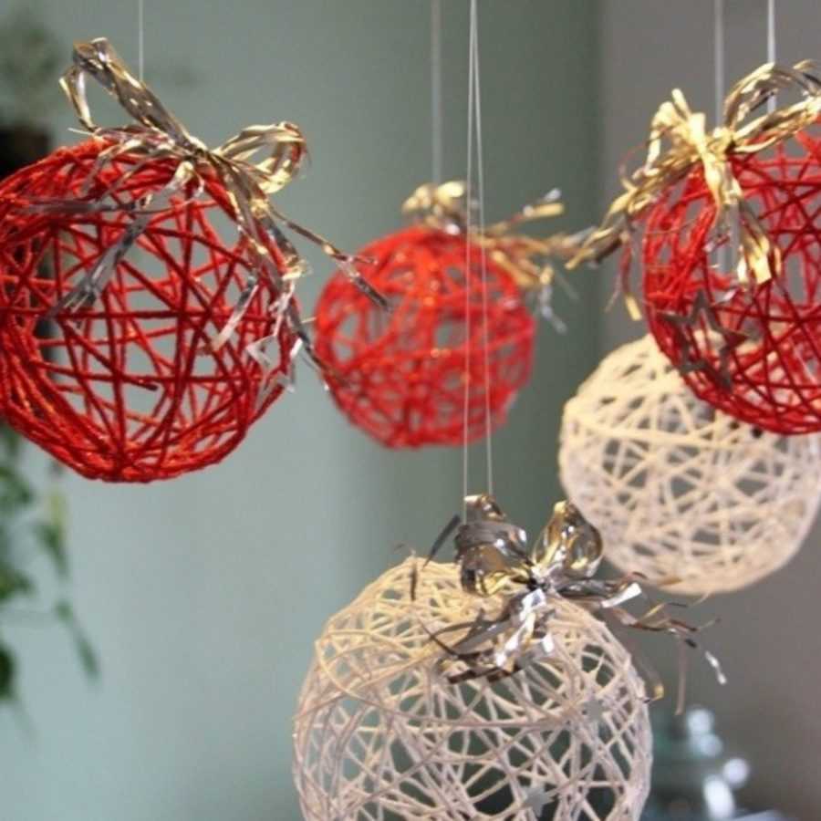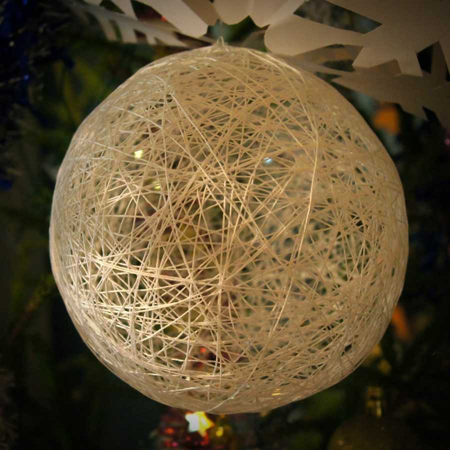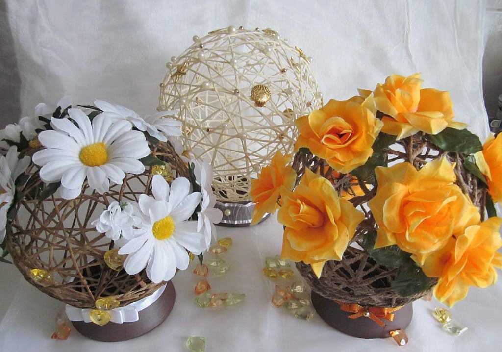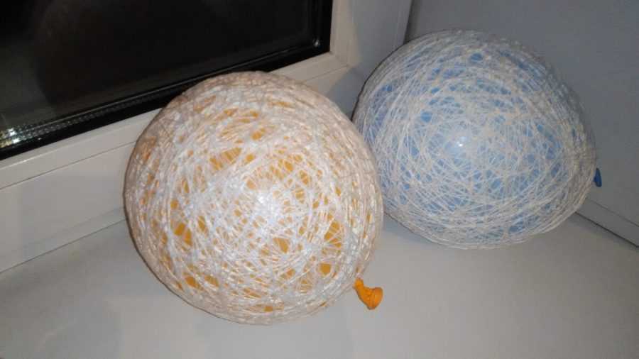 Выполнить в этой технике можно декоративные шары, вазочки для конфет и мелочей, пасхальный декор и даже абажуры. Особенно процесс изготовления поделки из ниток и клея нравится детям. Такую поделку можно делать даже с самыми маленькими ребятами. Для этого понадобятся нитки, клей ПВА, толстая игла, резиновый шарик.