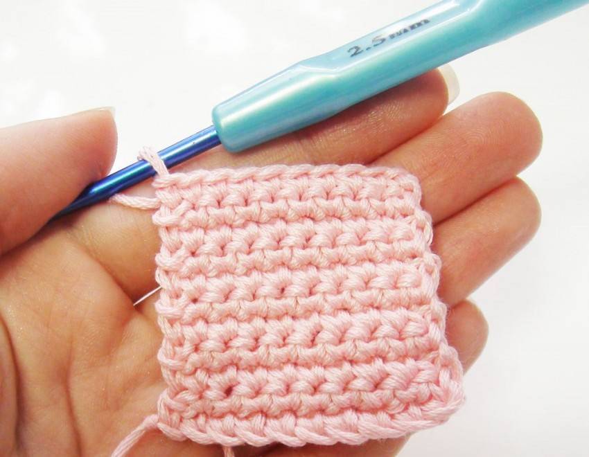 Когда цепочка готова, начинают осваивать полустолбик. Для этого через рабочую петлю протягивают другую, зацепленную за край соседней. Если вяжут вкруговую, так закрепляют начало и конец цепочки. Ряд полустолбиков внешне напоминает косичку, плотно прилегающую к основе.