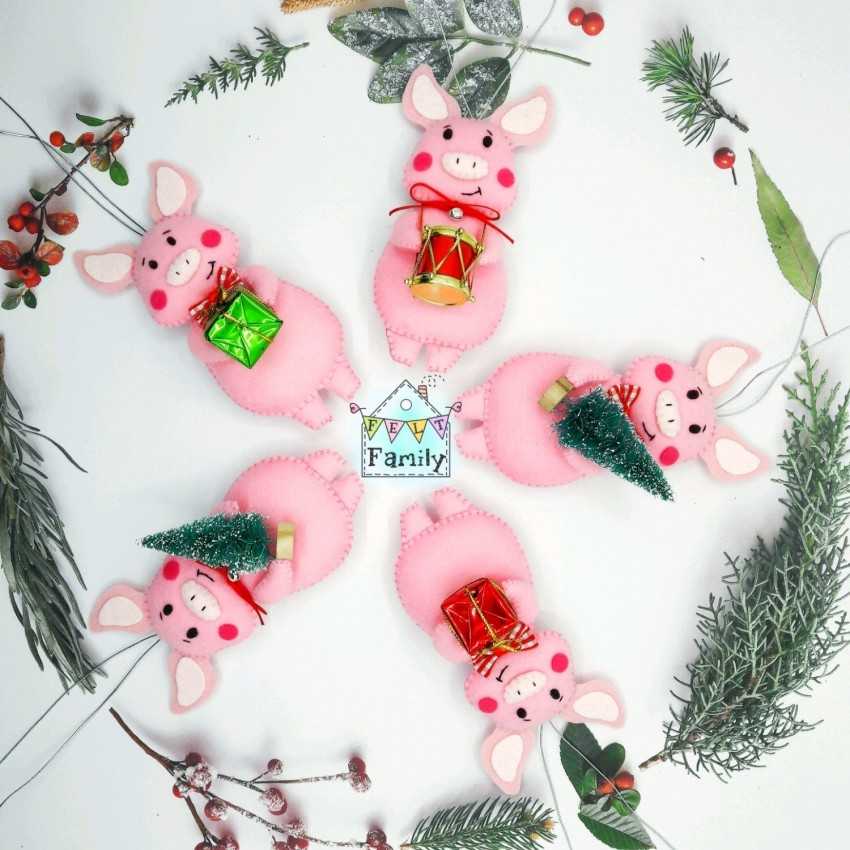 Любимым материалом для творчества у многих рукодельниц является фетр, представленный в различной цветовой гамме. Он очень легко поддаётся работе и не осыпается, поэтому создавать яркие и красивые поделки из него само удовольствие. Что касается новогодней тематики, то из фетра можно сшить как Быка впечатляющих размеров, так и небольшую объёмную фигурку. При этом использовать в работе швейную машинку совсем не обязательно.