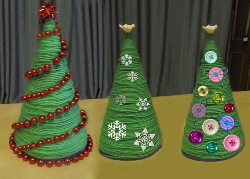 Изготавливают куклы, помпоны, шары, фигурки (новогодние в то числе). Если в качестве каркаса использовать проволоку или фольгу, то можно создавать фигуры человечков, животных, птиц др. Для этого обматывается конструкция, далее украшения из дома или магазина для творчества. Или раскрашивается акриловыми красками.