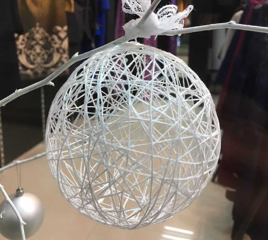 - Обмотайте шарик ниткой полностью, оставьте только небольшие щелочки