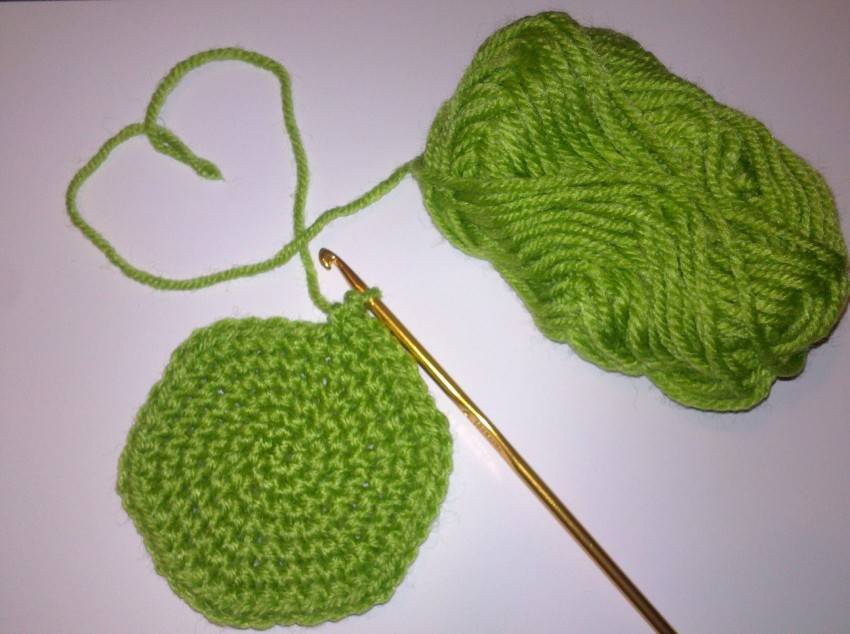 - Свяжите основание в виде круга (овала, прямоугольника) простой плотной вязкой столбиками без накидов.