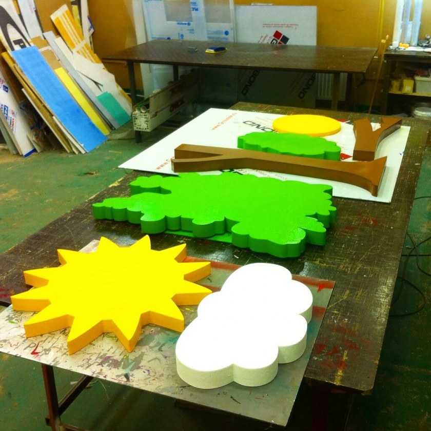 В большинстве случаев следует предложить ребенку самому выбрать фигуру для декора. Далее следует приготовить пенопласт (плоский лист), острый нож, набор красок, шпатлевка, кисти для росписи. Инструкция, как сделать оригинальную поделку из пенопласта своими руками для дома: