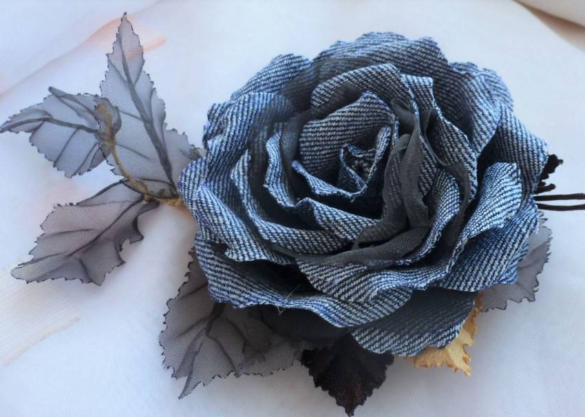 Цветы из джинсовой ткани