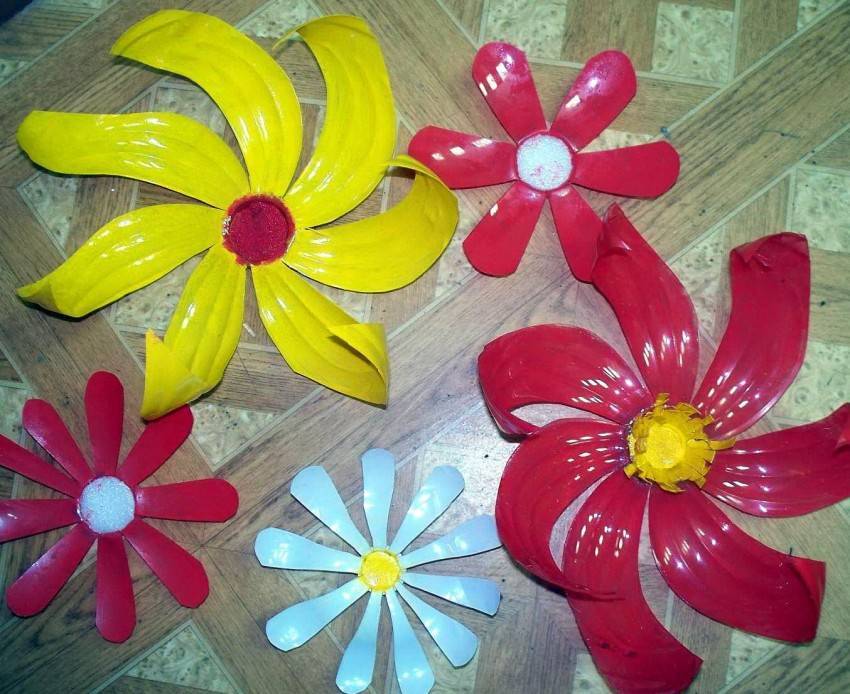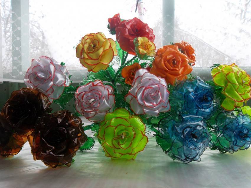 Самые распространенные поделки из пластиковых бутылок — фигурки для сада и цветы. Про садовые фигурки читайте тут. Там есть и другие интересные идеи, но много собранно интересных зверушек, насекомых. А про цветы из пластиковых бутылок расскажем ниже — это, наверное, те поделки из пластиковых бутылок, которые доставляют больше всего удовольствия. Процесс простой, возможностей масса, результат — удивительный.
