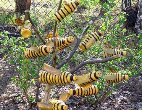 Чтобы ваш сад или огород оживился, вам нужно непременно его оформить пчелками. Такие изделия, созданные своими руками из пластиковых поллитровых бутылок, подвешенных на низкорослых деревьях, вызовут массу восхищения и улыбок среди ваших родных, детей, внуков и знакомых. Наш пошаговый мастер класс с фото идеей окажется для вас полезным и познавательным. Изучите его и беритесь за творческую работу незамедлительно, чтобы поскорее изготовить замечательную поделку в домашних условиях.
