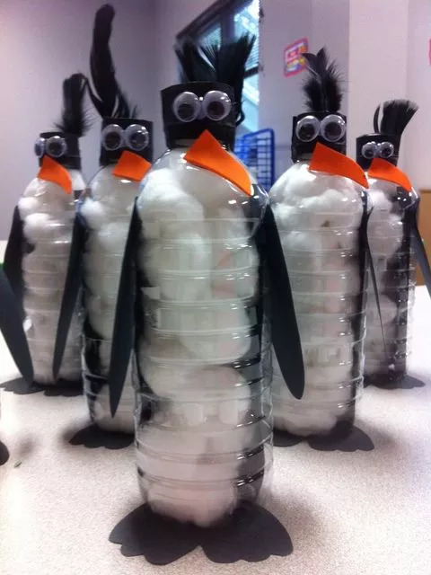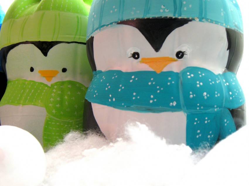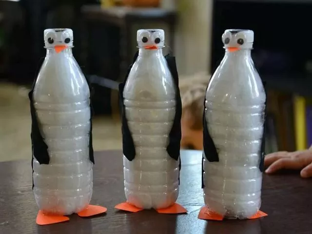 Пластиковые бутылки можно не только резать на части, но и использовать целиком. В таком виде они хорошо подходят для изготовления каких-либо фигурок. Например, такого вот пингвина.