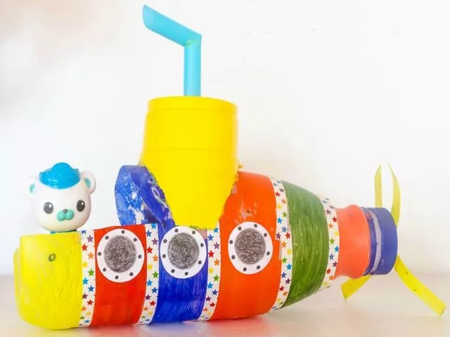 Если пофантазировать, то можно смастерить кораблик. Отрезаем продольную часть от бутылки, устанавливаем мачту или башню с трубой, раскрашиваем. Можно посадить куклу в качестве капитана.