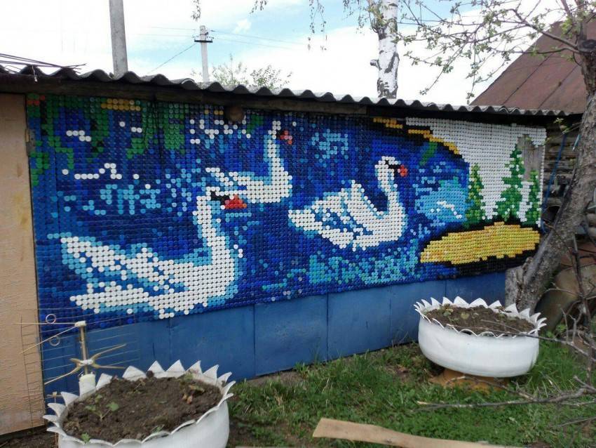 Неотъемлемая часть пластиковой бутылки – пластиковая крышка. Казалось, что за мелочь – но и её нашли применение народные умельцы. Из крышечек стали создавать красивейшие панно и целые картины. Сегодня подобное творчество вылилось в отдельное арт-направление.