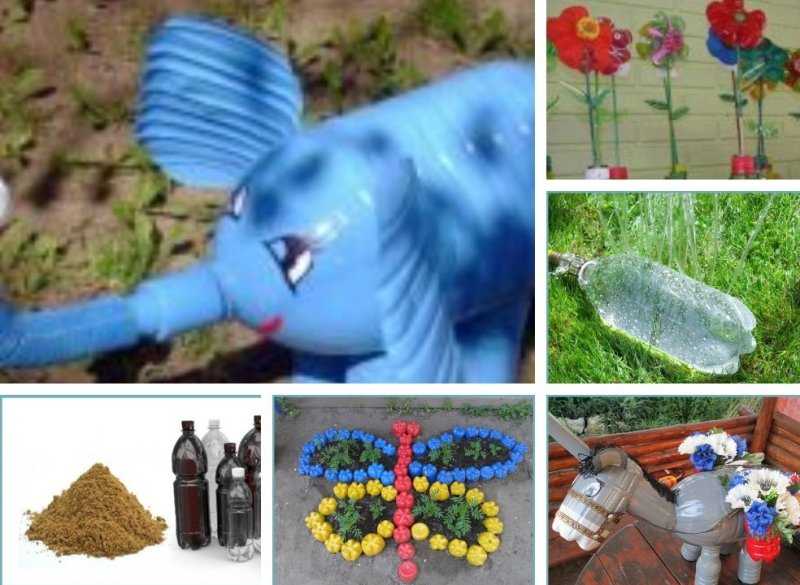 Свою территорию на даче можно разнообразить различными поделками из этого материала. Из них можно сделать различные цветы и растения, кормушки для птиц и животных, шторы, кашпо для цветов, вазы, садовую мебель, подвесные сады, гирлянды и многое другое. Такие элементы помогут сделать огород и дом чуть-чуть ярче и добавить некую изюминку.