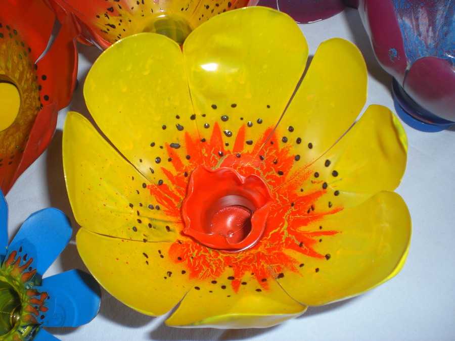 Если отрезанные донышки разрисовать, получатся волшебные по красоте своей цветы