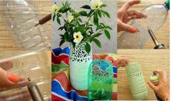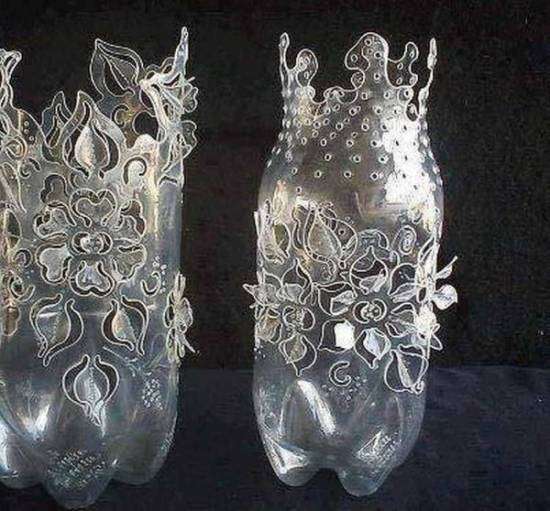 Создавая полезные и красивые поделки, пластиковый материал можно окрашивать, разрезать, менять его форму, декорировать, оформить другими подручными средствами. Используется здесь и техника декупажа, ручной росписи, аппликации и множество других технологий.