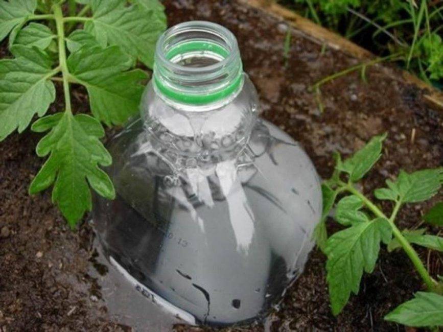 Отрезанная часть бутылки устанавливается так, чтобы горлышко было внизу, после оно присыпается землей. Чтобы полить растение, нужно открыть установленную крышку и залить воду. Если установить наоборот, желательно сделать отверстия для отвода воды.