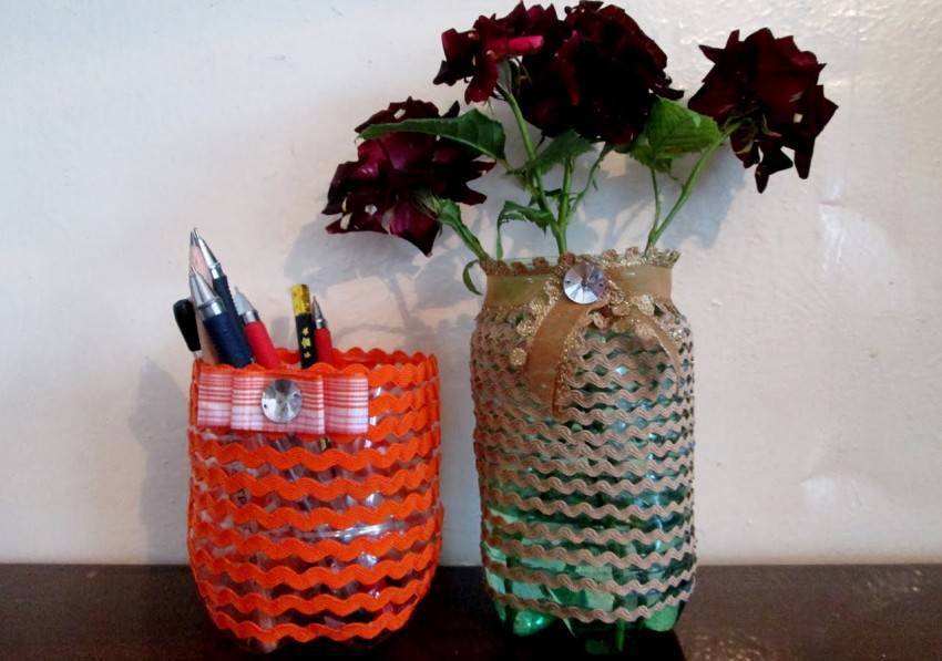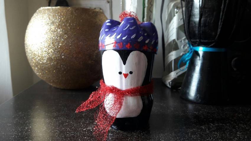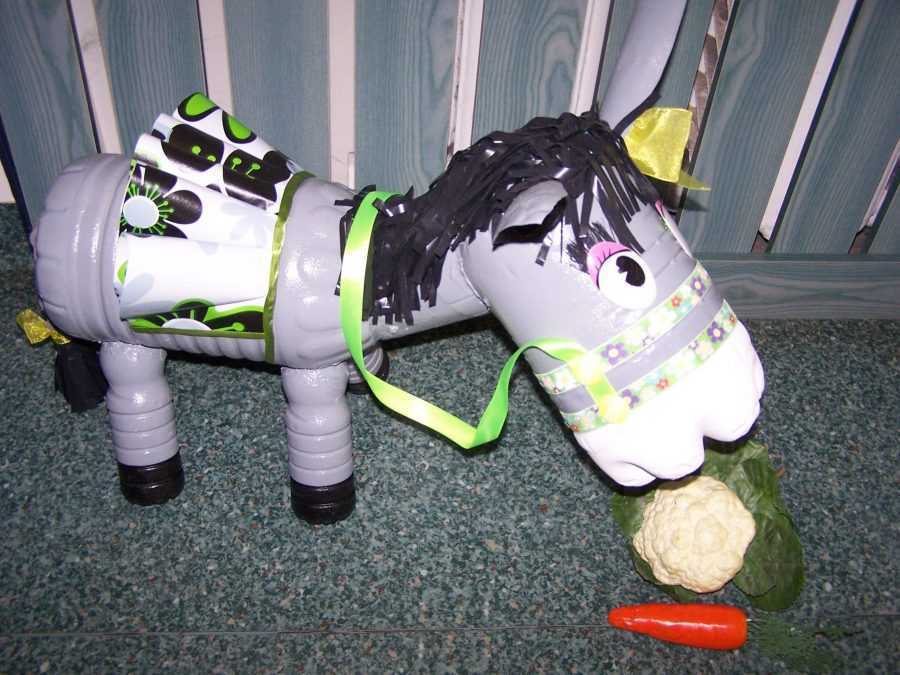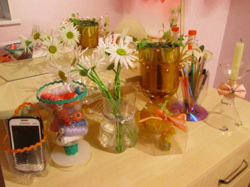 Такая поделка из пластика подойдет для школы. Можно ее принести для выставки, где будут демонстрироваться предметы, выполненные своими руками.