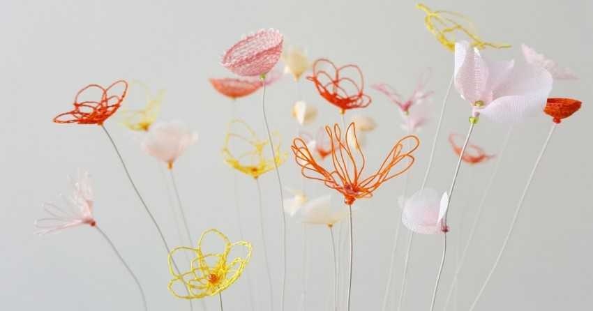 Отличным выбором для декорирования интерьера станут цветы из проволоки. Для одного лепестка делается заготовка. Проволока проходит вокруг карандаша. Ее концы переплетаются, чтобы создать лепесток. Диаметр элемента не должен превышать 5 мм.