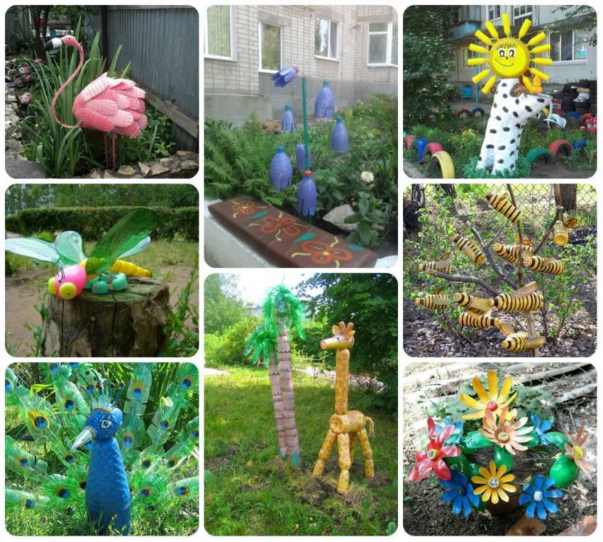 Самые распространенные поделки из пластиковых бутылок — фигурки для сада и цветы. Про садовые фигурки читайте тут. Там есть и другие интересные идеи, но много собранно интересных зверушек, насекомых. А про цветы из пластиковых бутылок расскажем ниже — это, наверное, те поделки из пластиковых бутылок, которые доставляют больше всего удовольствия. Процесс простой, возможностей масса, результат — удивительный.