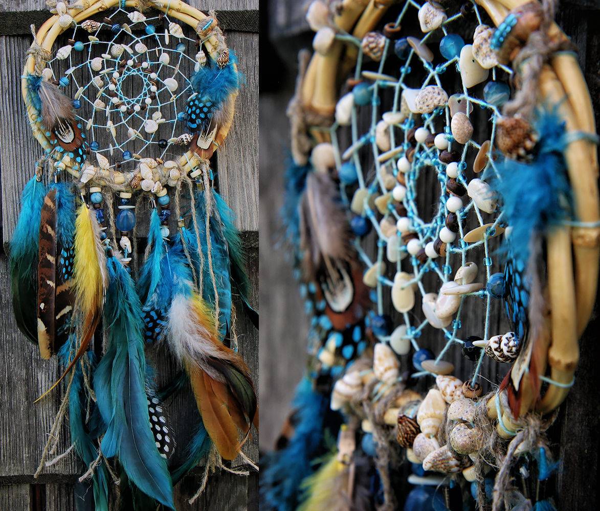Ловец снов – популярный индейский амулет, отгоняющий дурные сны, который можно изготовить в морской тематике. Несколько сложен в исполнении, но результат смотрится очень эффектно.