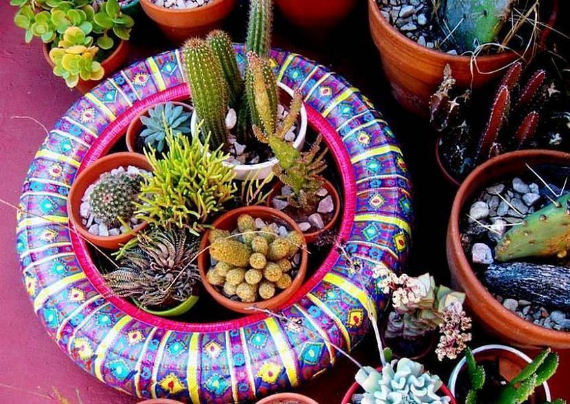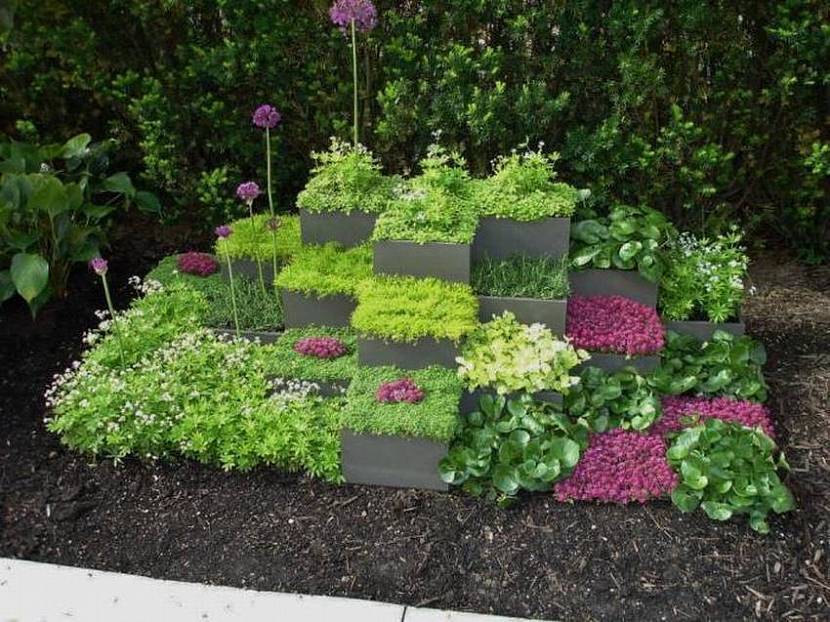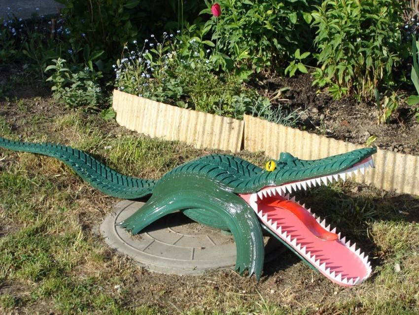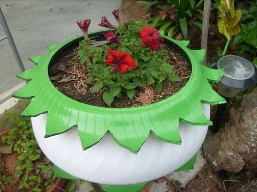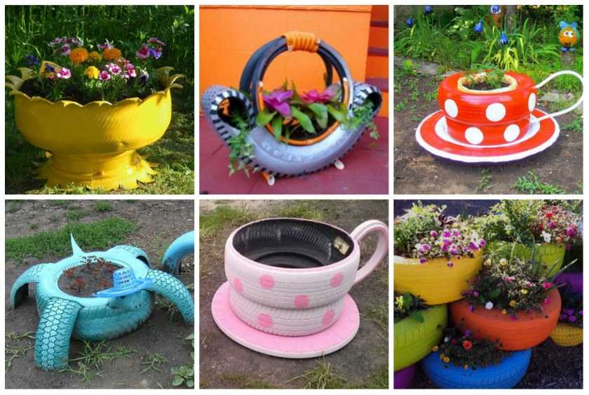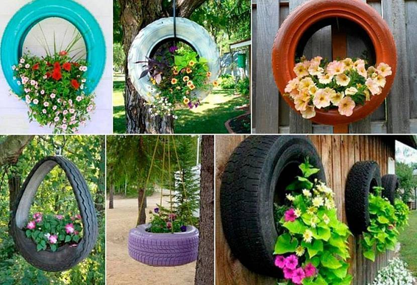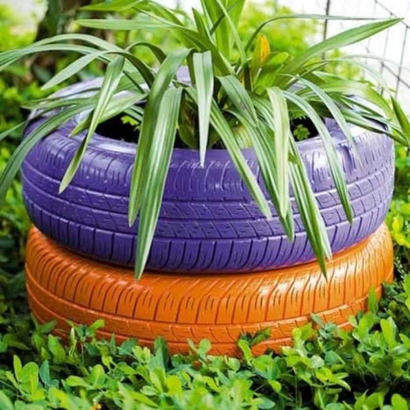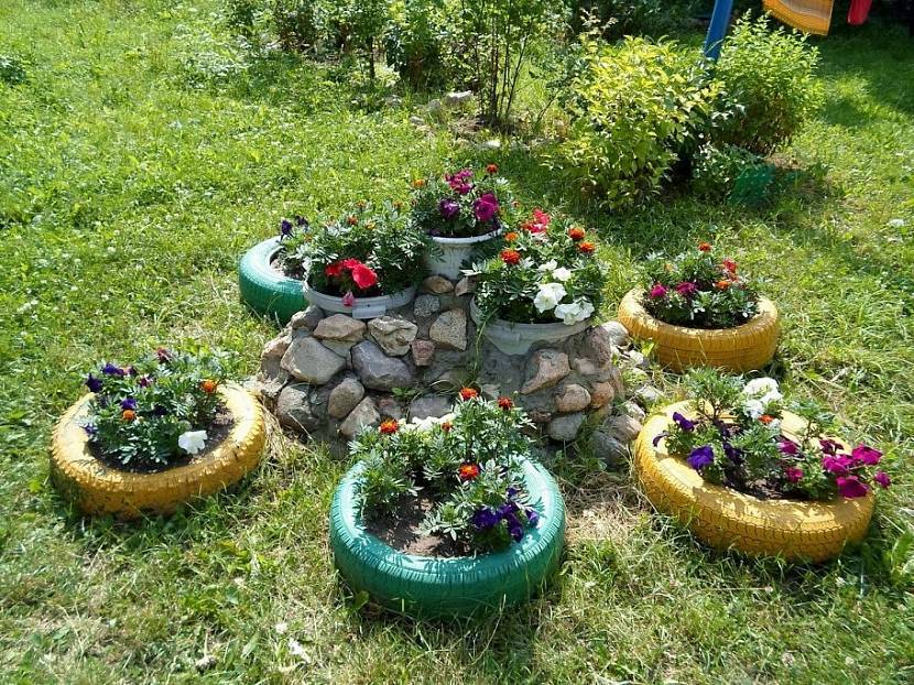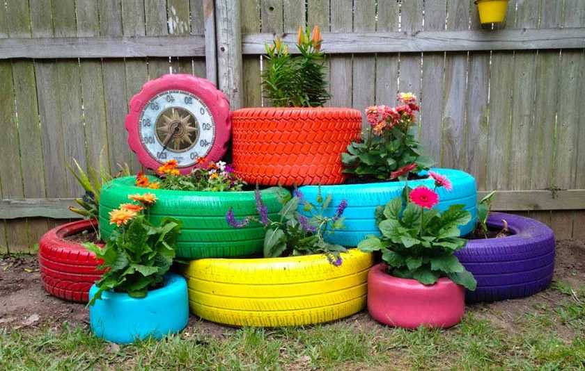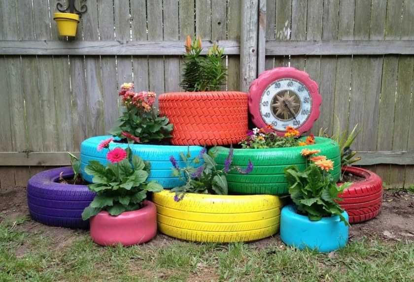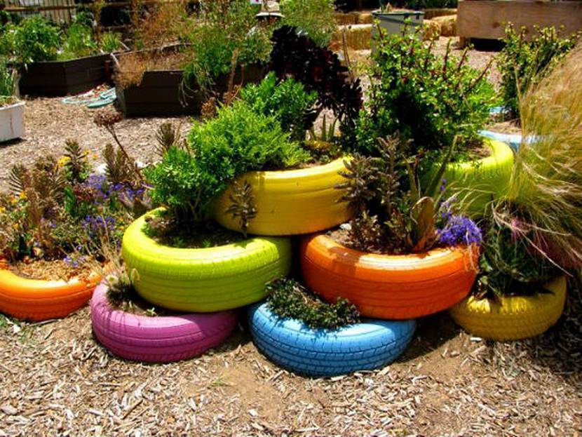 В ход идут старые автомобильные покрышки, пластиковые бутылки, пни, консервные банки и даже старая обувь. Остается лишь включить фантазию и приступать к делу.