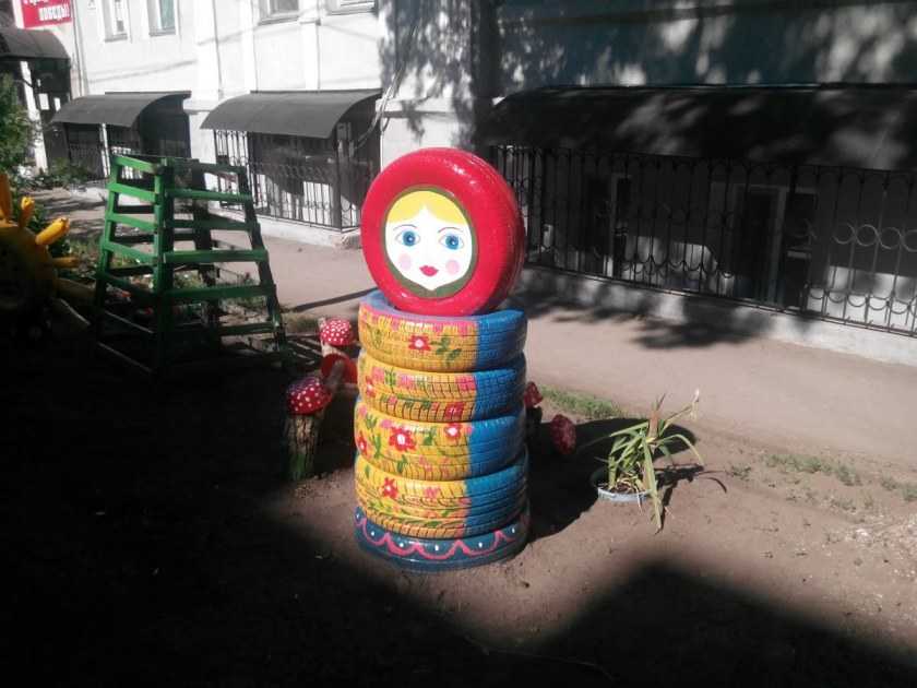Еще один обаятельный персонаж – матрешка. Она больше нравится прекрасному полу и требует четыре-пять покрышек: