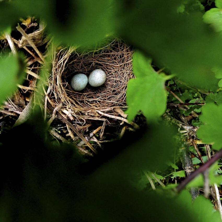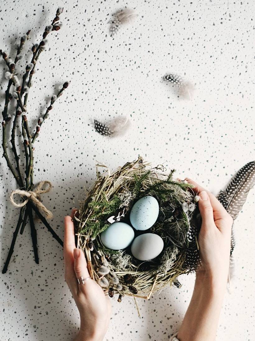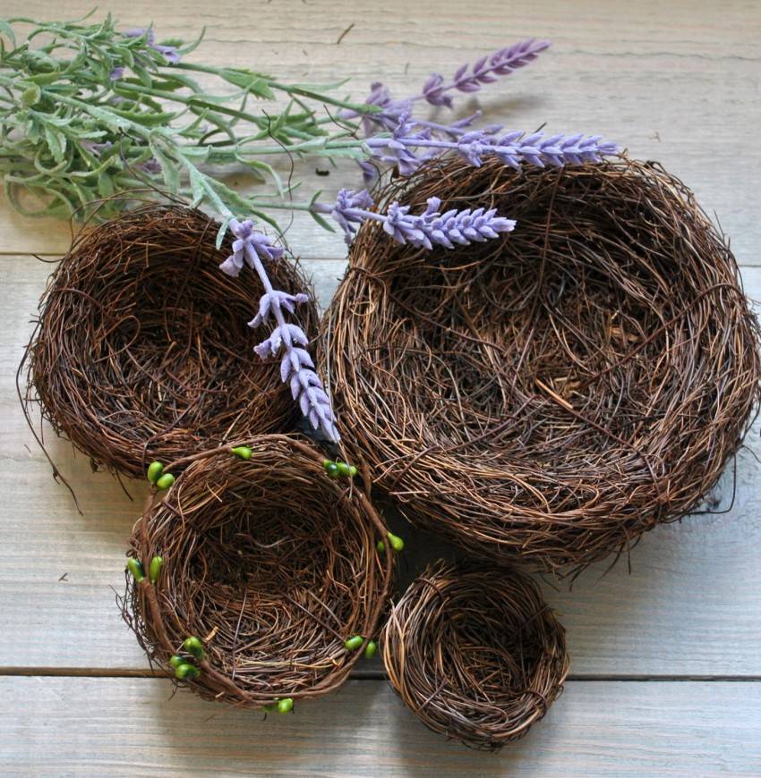 Используя листочки, закрываем большие отверстия в гнезде и придаем, тем самым, естественный вид поделке.