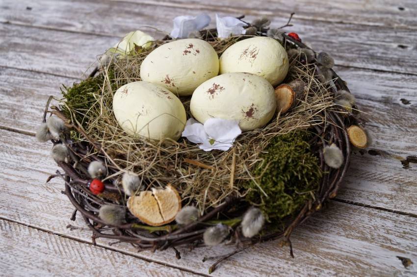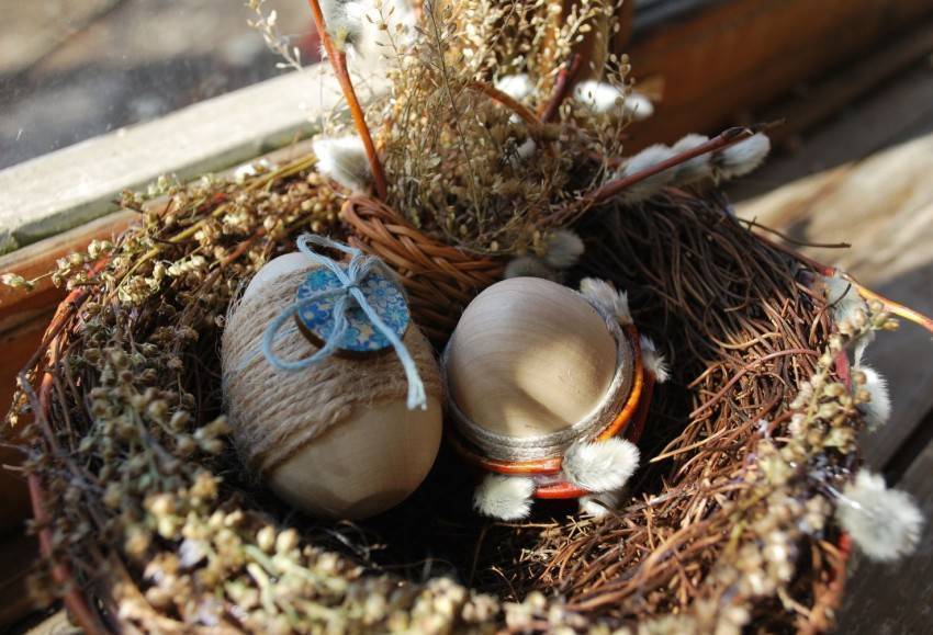 Для декорирования также можно использовать салфетки, кору дерева, сухие ветки, фрагменты старой решетки. Все эти элементы оценят любители эко-декора.