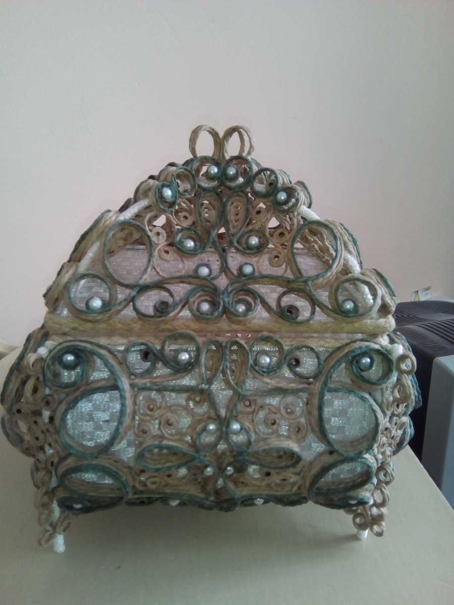Готовое изделие следует покрыть лаком или разведенным ПВА, чтобы закрепить жгуты, а затем покрасить вазу в любой цвет.