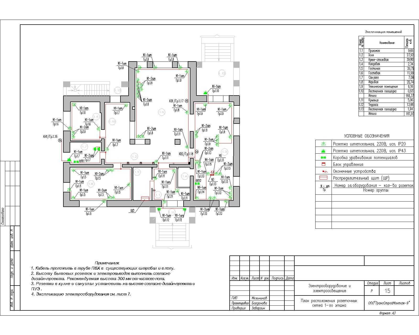 После того, как разрешение и технические условия получены, нужно разработать проект электрификации участка. В принципе, составить план разводки проводки по дому можно самостоятельно, но если дом будет большим, с подсобными и техническими помещениями, с выводом электричества в зону установки насосной станции или насоса для подачи воды, лучше заказать проект в специализированной организации. И лучший вариант — в той энергосбытовой организации, куда вы подавали заявку на подключение. Проблем с приемкой будет куда меньше.