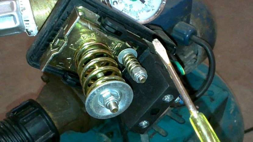 В целом, натяжения пружин и отвечают за включение и выключение насоса при достижении определенного давления. Нормы, отмеченные в инструкции к устройству, гласят, что разница между режимами составляет 2 атм. Следует отрегулировать натяжение пружин, чтобы установить нужное значение. Делается это следующим образом: