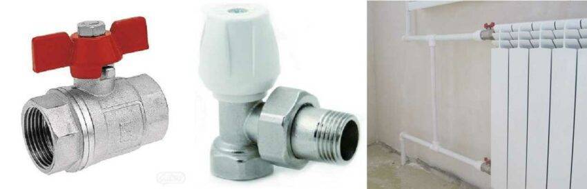 Нужны будут еще два шаровых крана или запорных с возможностью регулировки. Они ставятся на каждой батарее на входе и на выходе. Если это обычные шаровые краны, они нужны чтобы при необходимости можно было отключить радиатор и снять его (экстренный ремонт, замена во время отопительного сезона). В таком случае даже если что-то с радиатором случилось, вы его отсечете, а остальная система будет работать. Плюс такого решения — небольшая цена шаровых кранов, минус — невозможность регулировки теплоотдачи.