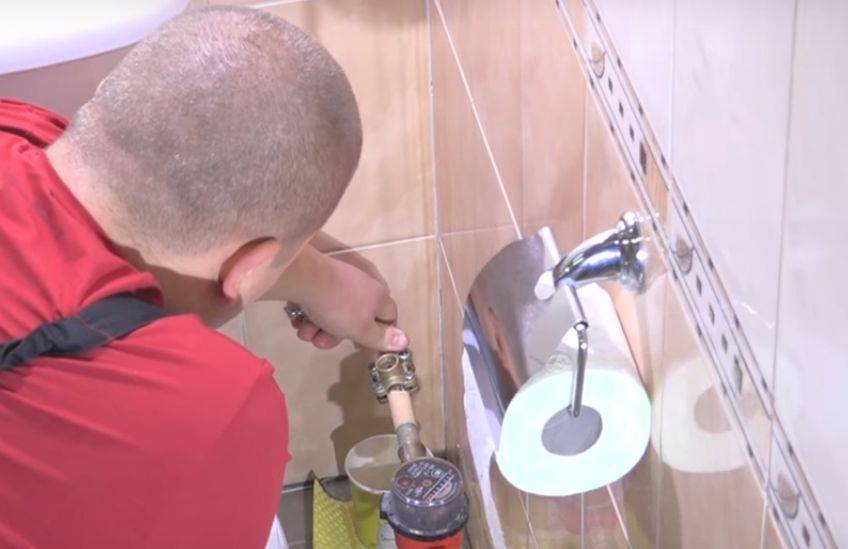 Если вы не можете самостоятельно врезаться в трубу водопровода, лучше обратиться к профессионалу. В большинстве случаев используют уже имеющийся отвод в туалете между бачком и системой водоснабжения.