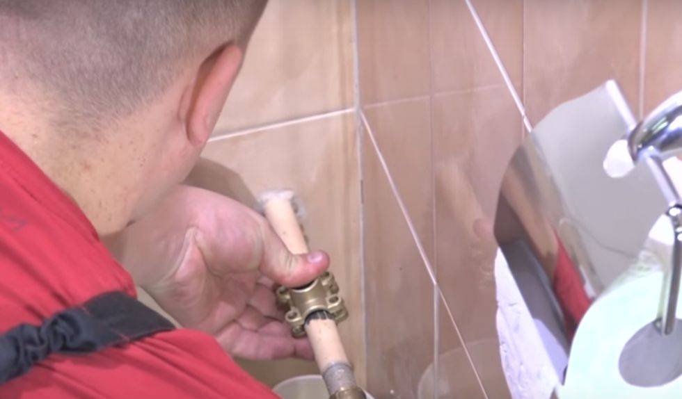 - Сначала очистите резьбу на открывшейся трубе от старого уплотнения.