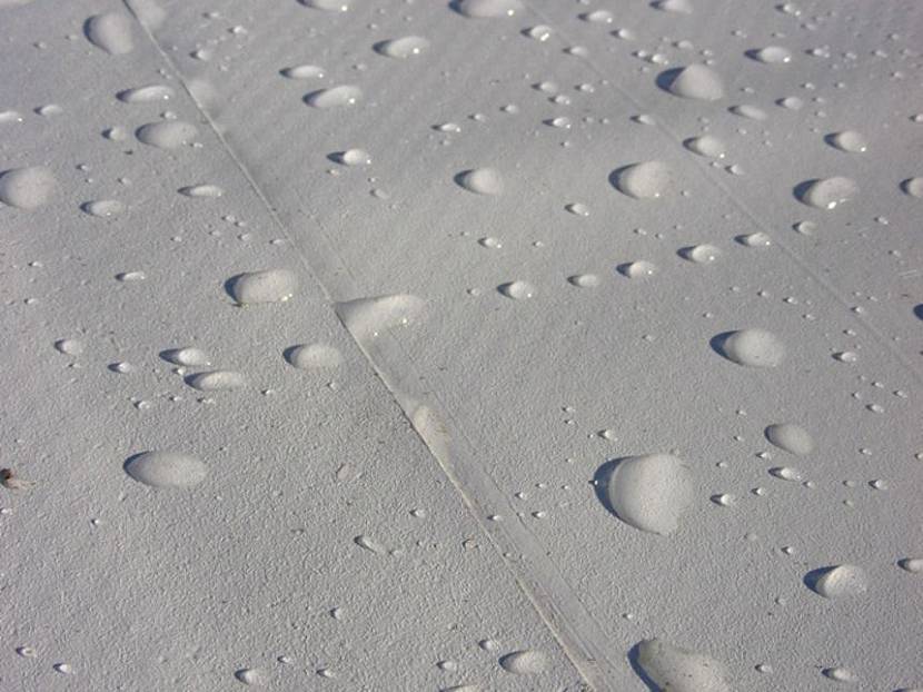 - «Дышащая». Полотно защищает крышу от атмосферных осадков с внешней стороны и, одновременно, выпускает влагу и конденсат из всех кровельных слоев. Изготавливают полотно из синтетических волокон. Для односторонней влагопропускаемости делают специальные отверстия микроскопических размеров.