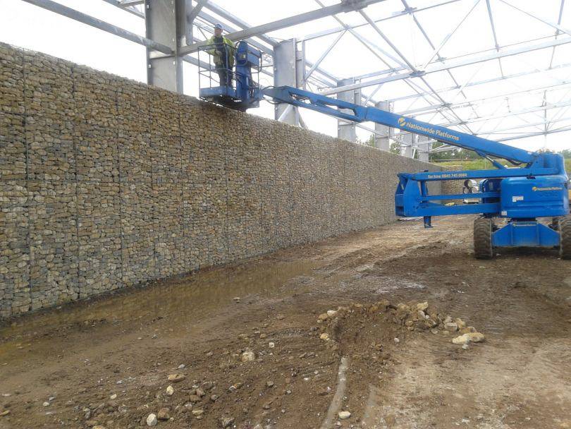 Отдельно надо сказать о стенках из камня, которые носят названия габионы. Это каркас из стальной решетки или сетки, куда засыпаются камни. Самое главное в этом сооружении – надежно закрепить к грунту каркас, для чего применяются штыри и скобы, изготовленные из оцинкованной стали.