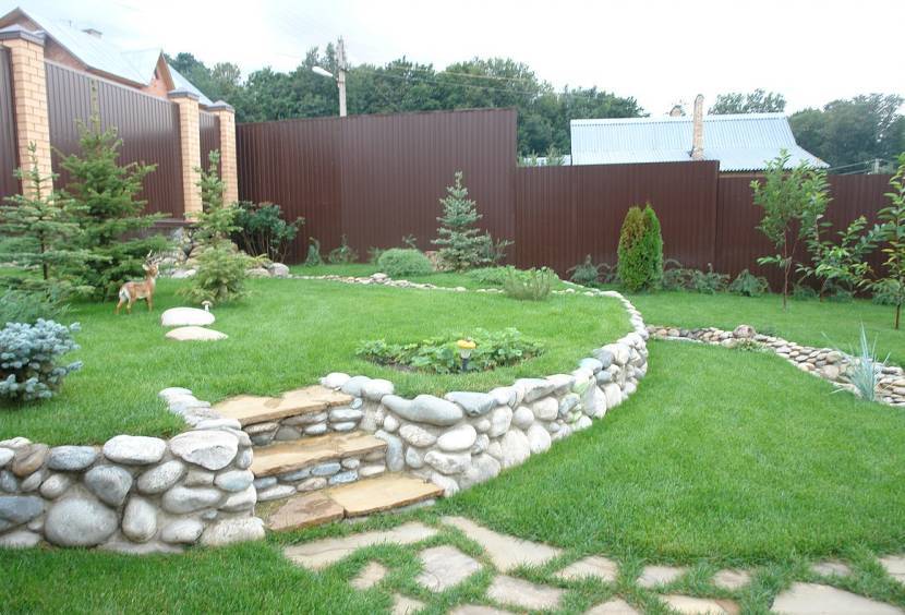 Высота подпорной стенки должна соответствовать не только заданному уровню перепада высот, но и основным архитектурным объектам.