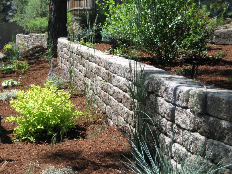 Для возведения подпорных стен из камня может быть использована сухая кладка или же цементный раствор. Огромный ассортимент природного и искусственного камня позволяет подобрать подходящий вариант для обустройства ландшафтного дизайна на садовом участке, выполненном в любом стиле. Чаще всего используется: