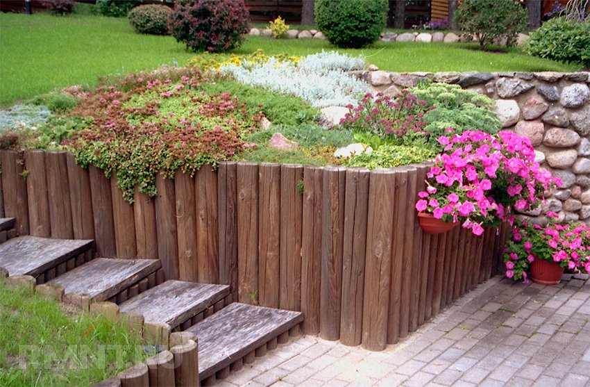 | Зонирование | Неровный ухабистый участок легко зонируется при помощи подпор. Так, возможно поделить, к примеру, дом и сад, дом и беседку. |