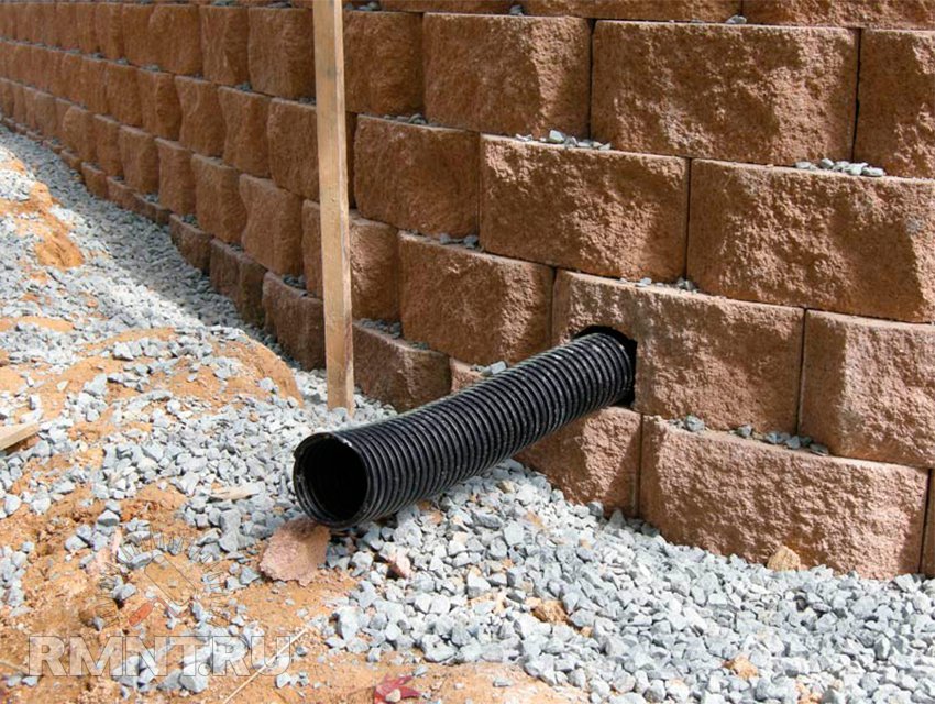 Функции данной системы – накопление и отведение лишних жидкостей разного происхождения (грунтового, дождевого, талых вод). Это помогает предотвратить размывание стенки и ее подтопление. Конструкции бывают поперечными, продольными или смешанными.