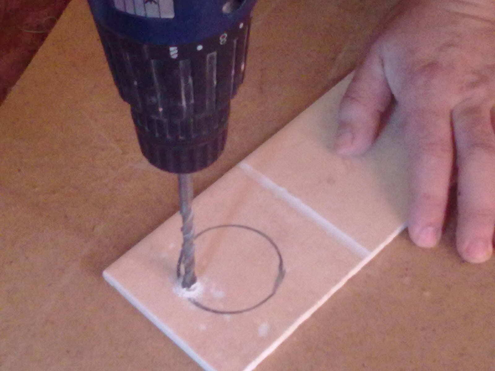 Совет: Перед началом работы, применяя все указанные инструкции, потренируйтесь в мастерстве сверления плитки на оставшихся от облицовки обломках.