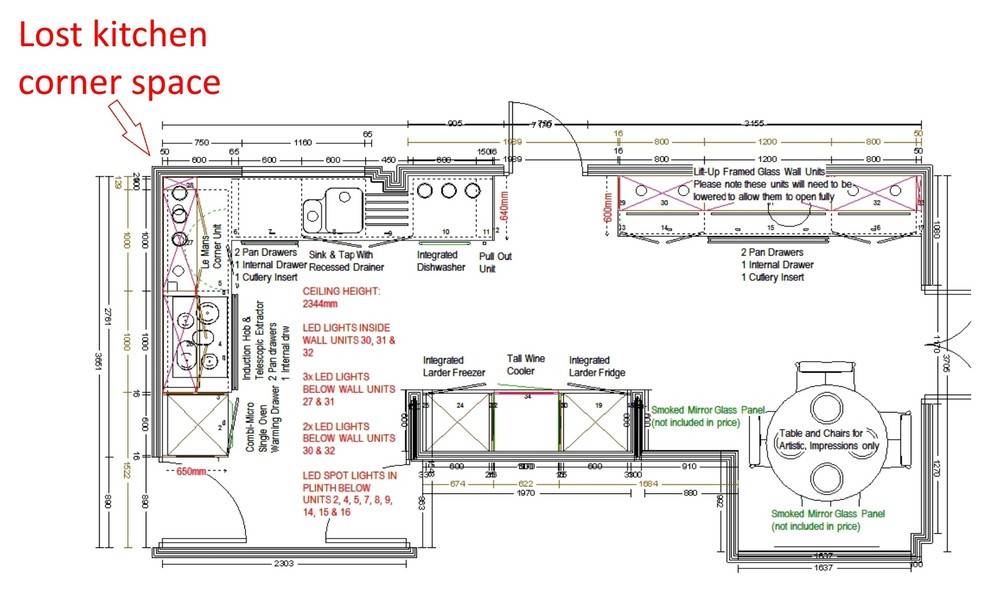 - Мебель необходимо устанавливать таким образом, чтобы любые дверцы (шкафов, холодильника, духового шкафа) легко открывались.